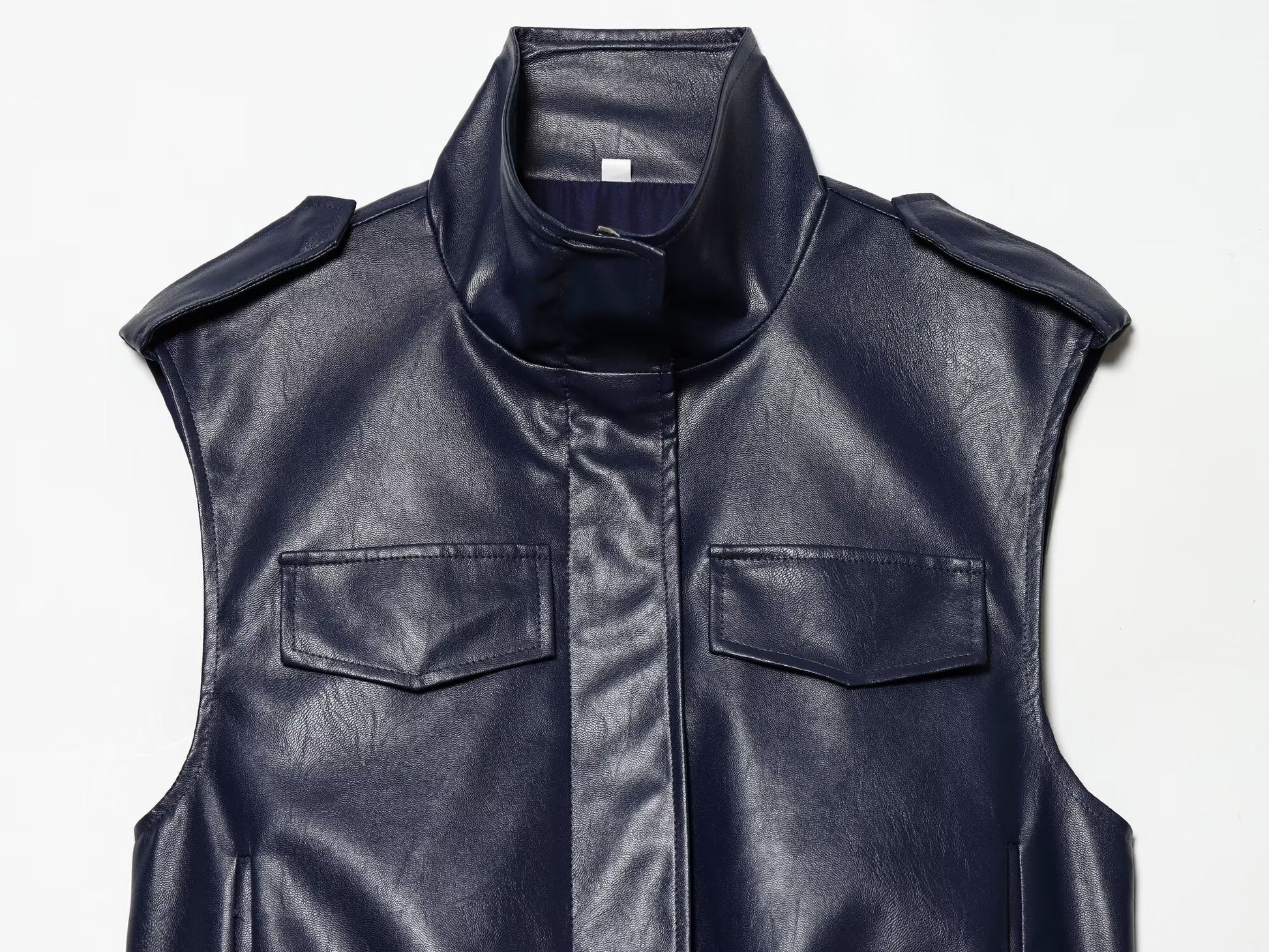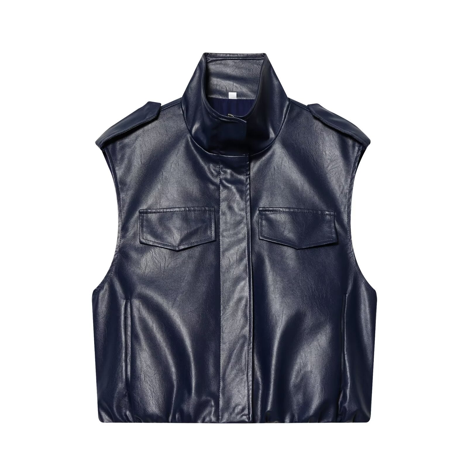 suit Women's 2 pieces leather effect sleeveless stand collar top+Skirts