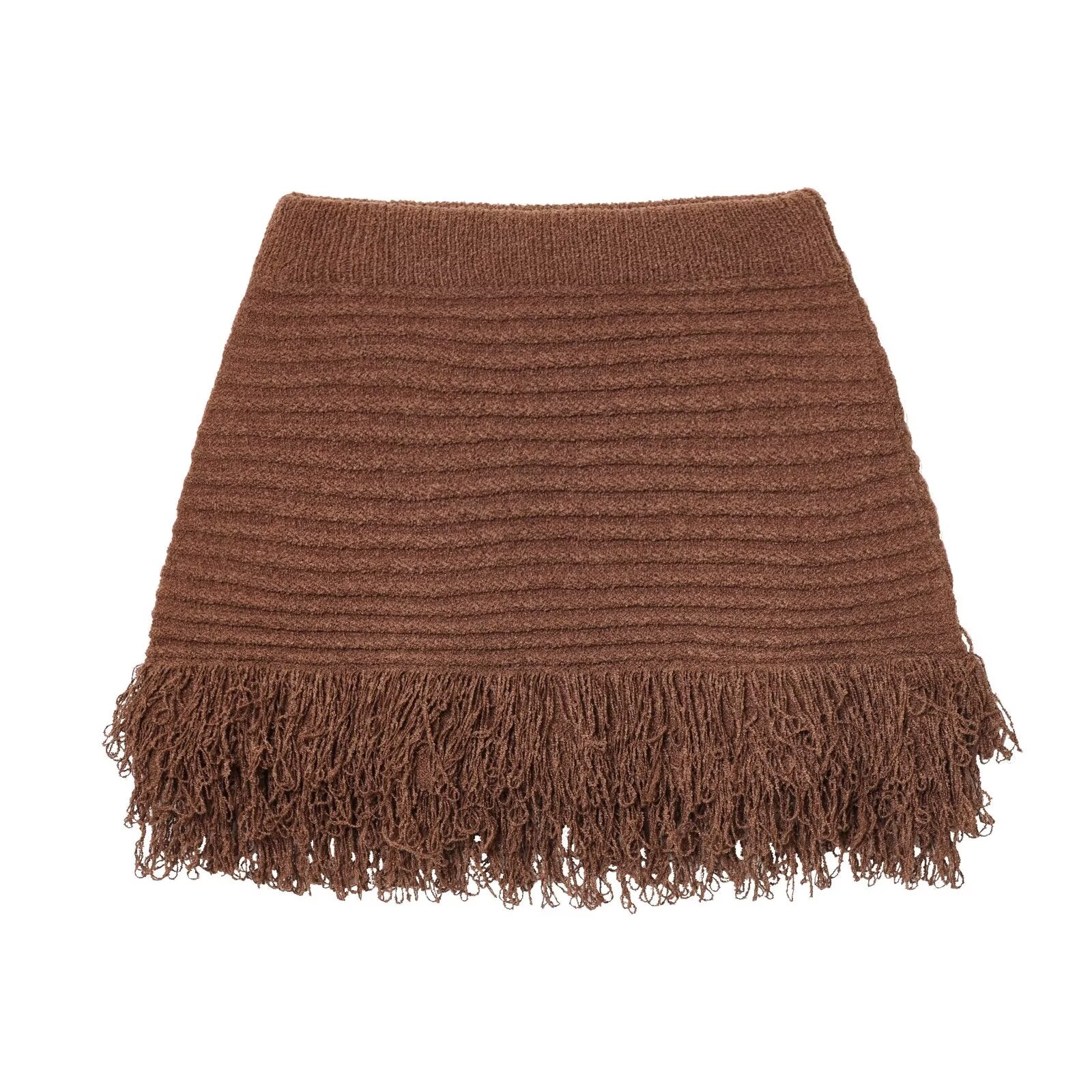 suit Women's 2 pieces tassel decorated Plaid knit Coat+Skirts