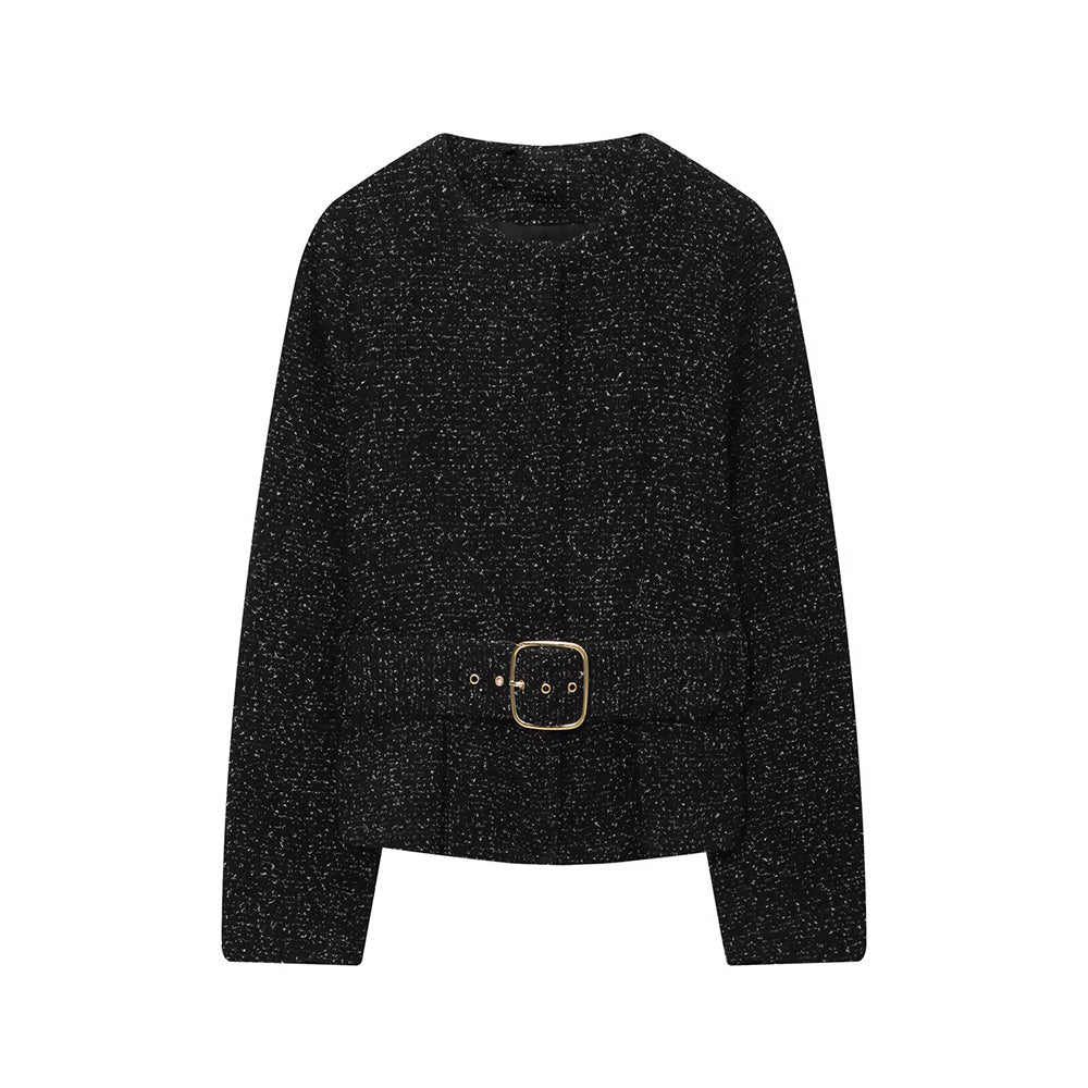 suit Women's 2 pieces with Belt O Neck textured Blazer Coat +skirt pants