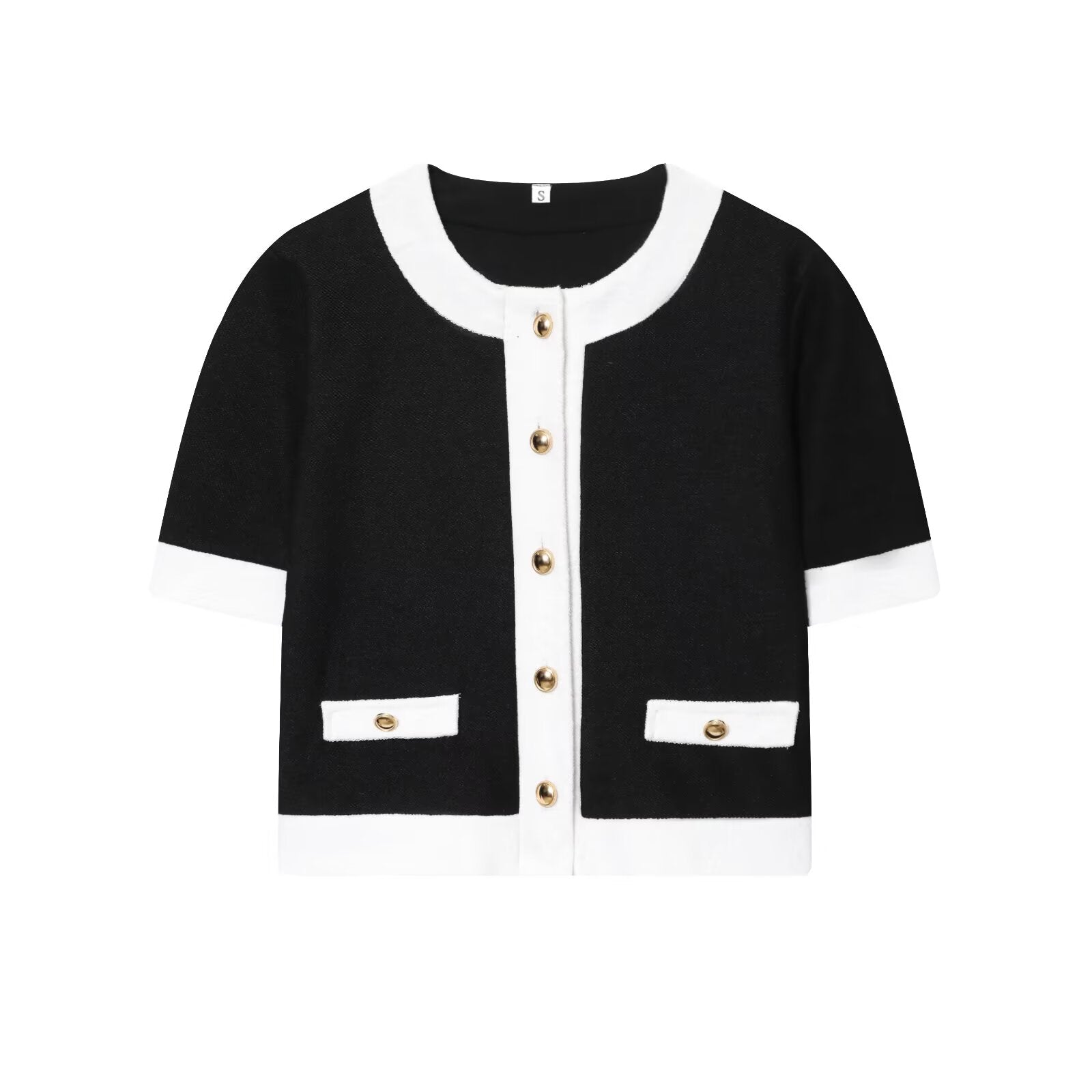Women's 2 pieces short sleeved contrasting woolen Coat+Pants