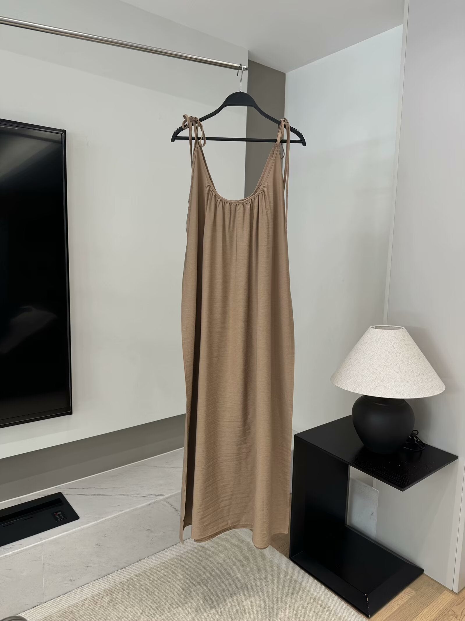 Women's 2025 new chic Fashion loose draped suspender MIDI dress retro sleeveless women's dress