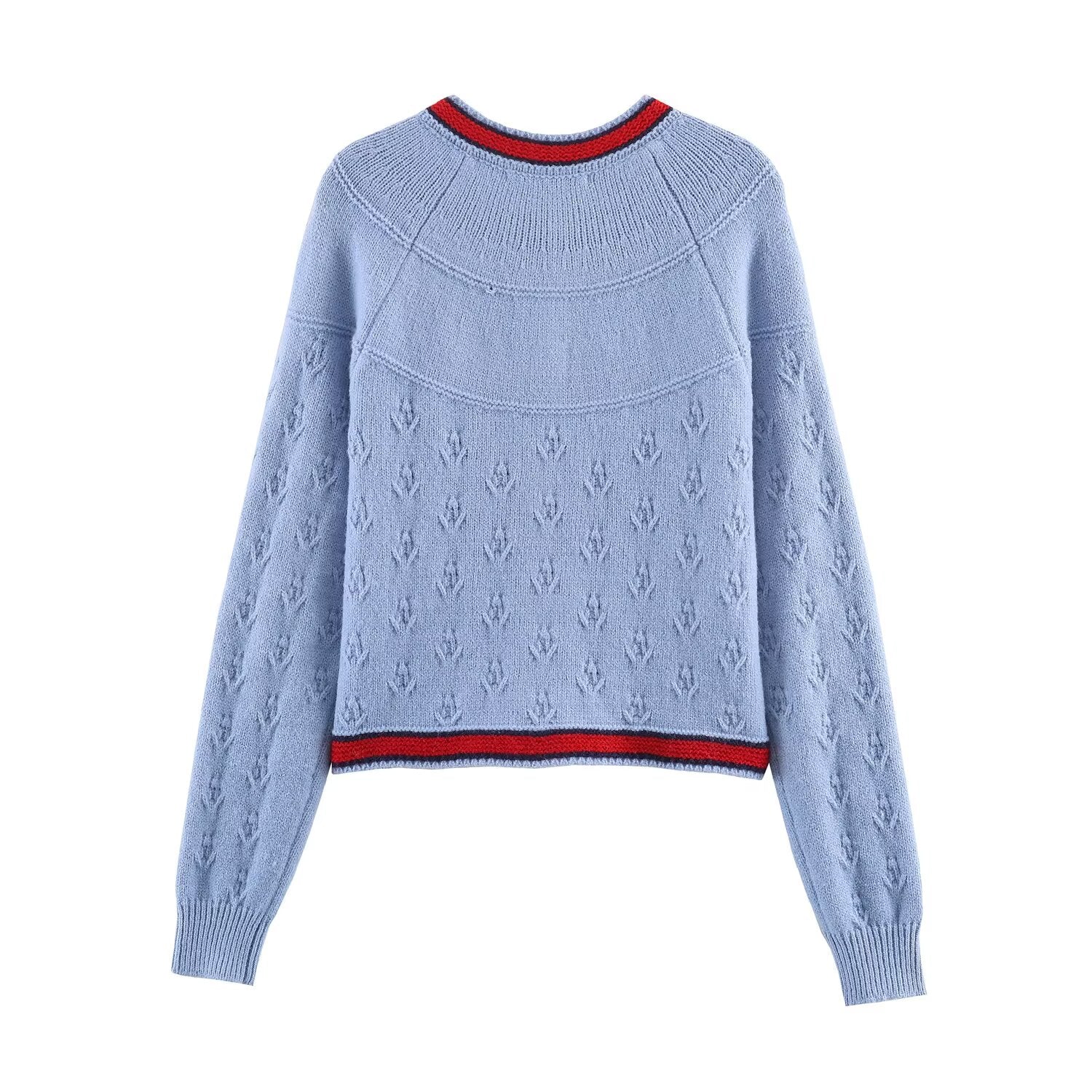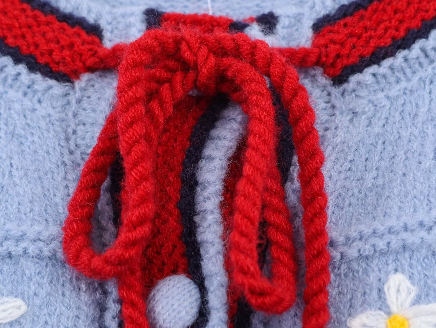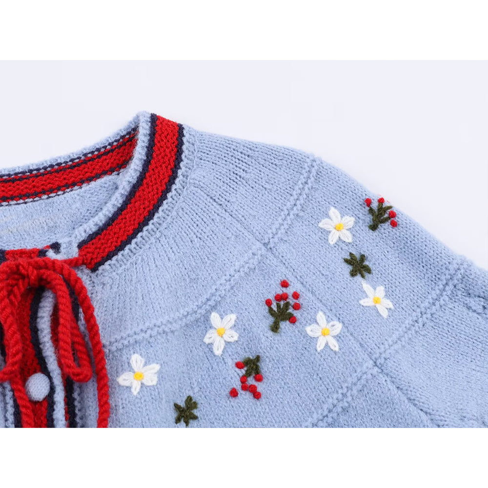 Women's embroidery decorative lace up knitted cardigan