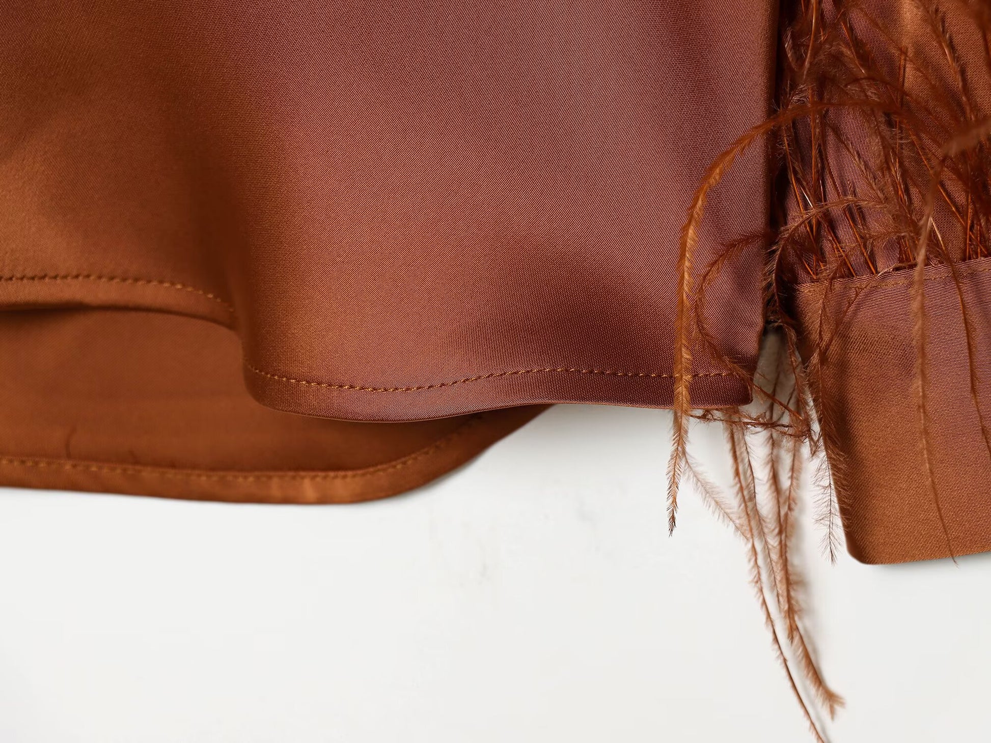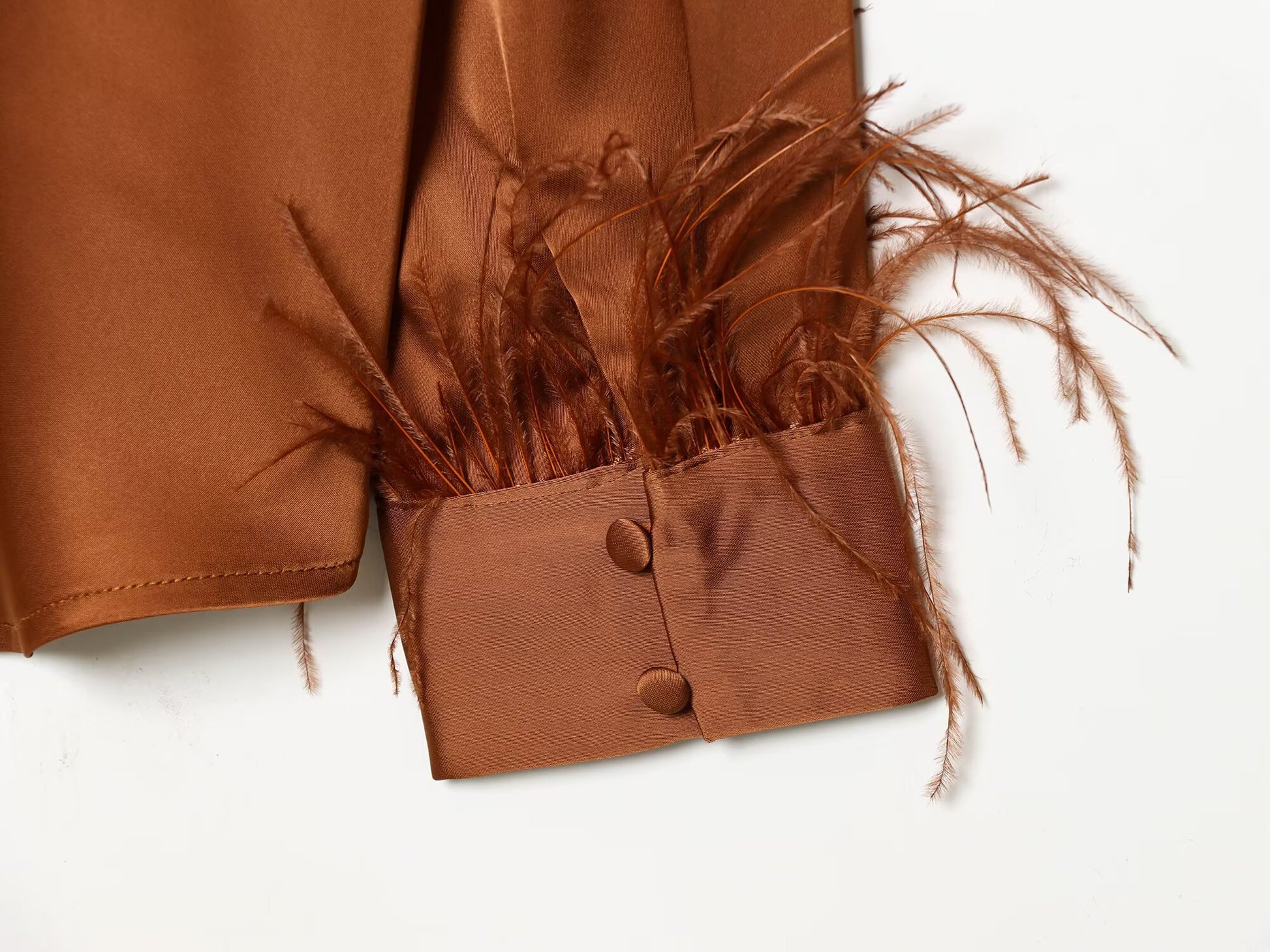 Women's feather decorated lapel satin textured shirt