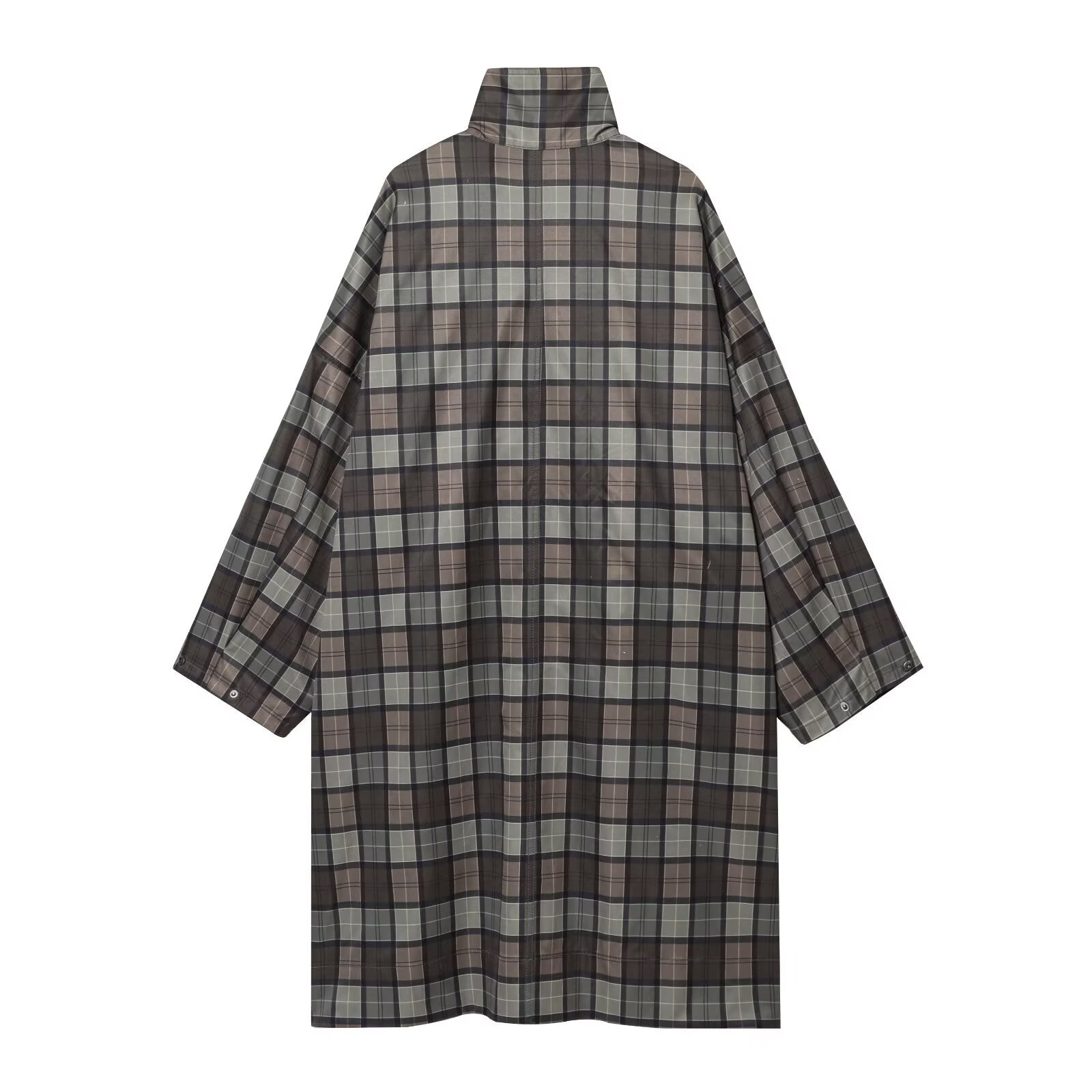 Women's loose standing collar plaid Windbreaker coat