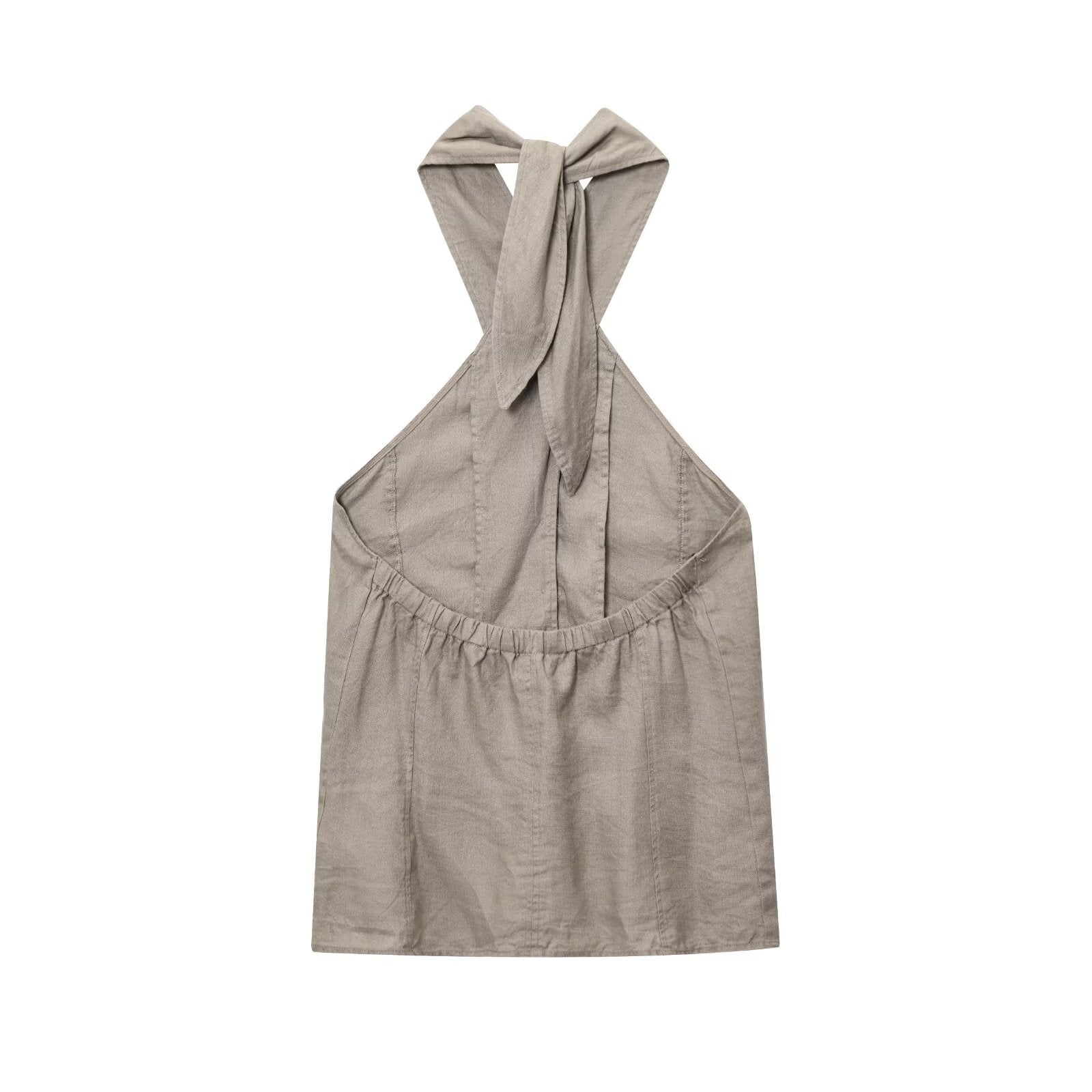 Women's new fashion linen blend halter neck vest style top+Skirts suit