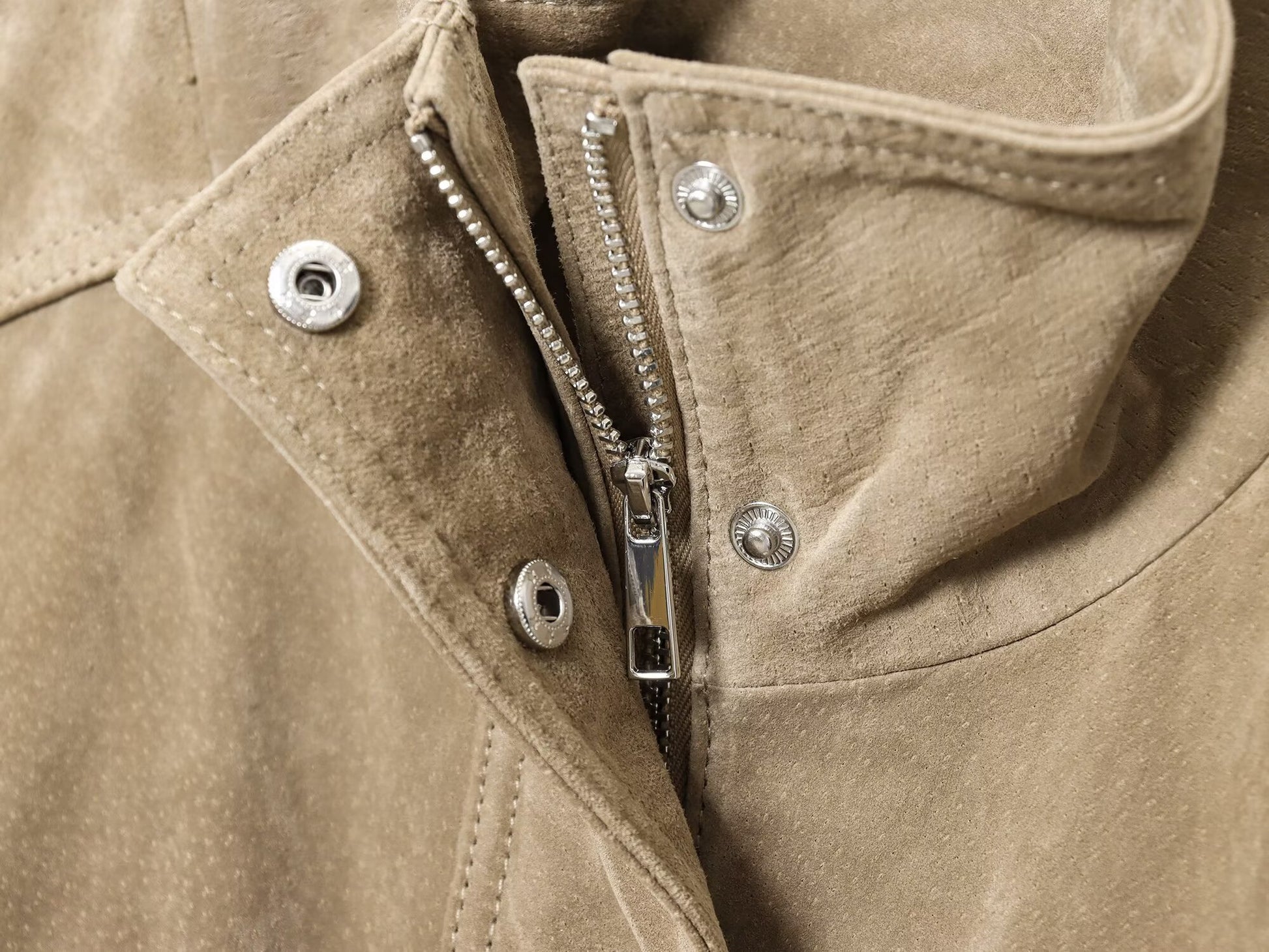 Women's new fashion loose stand collar suede textured leather jacket