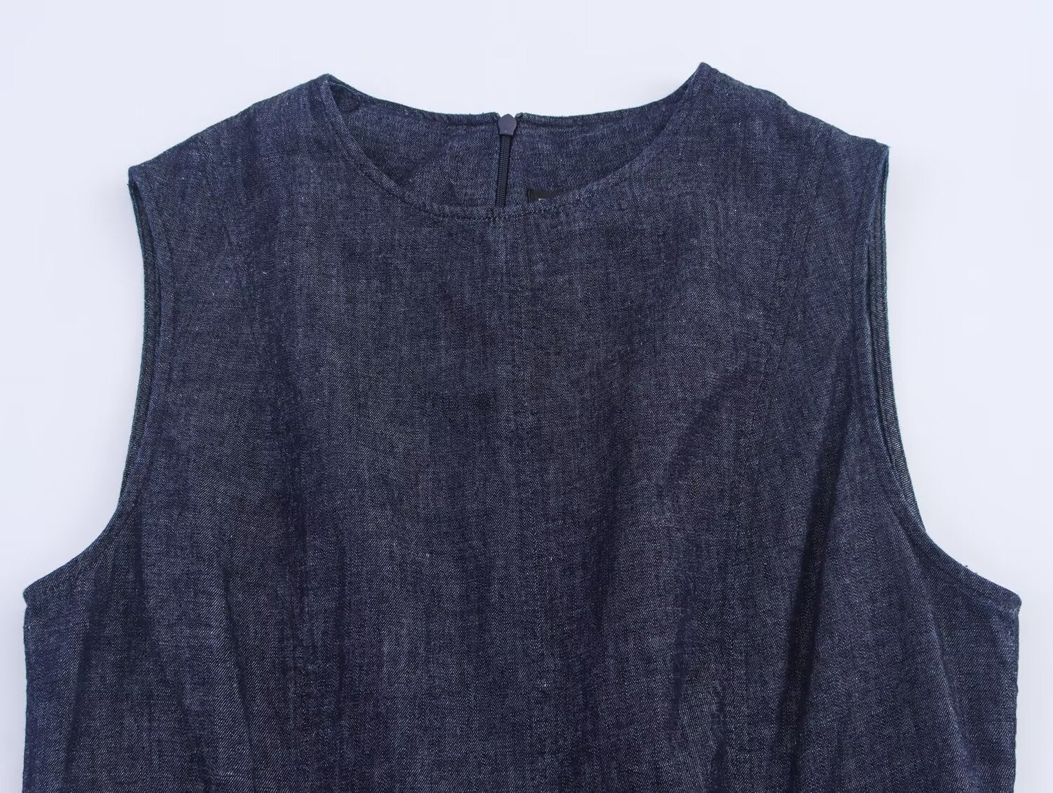 Women's new fashion sleeveless round neck denim Midi dress