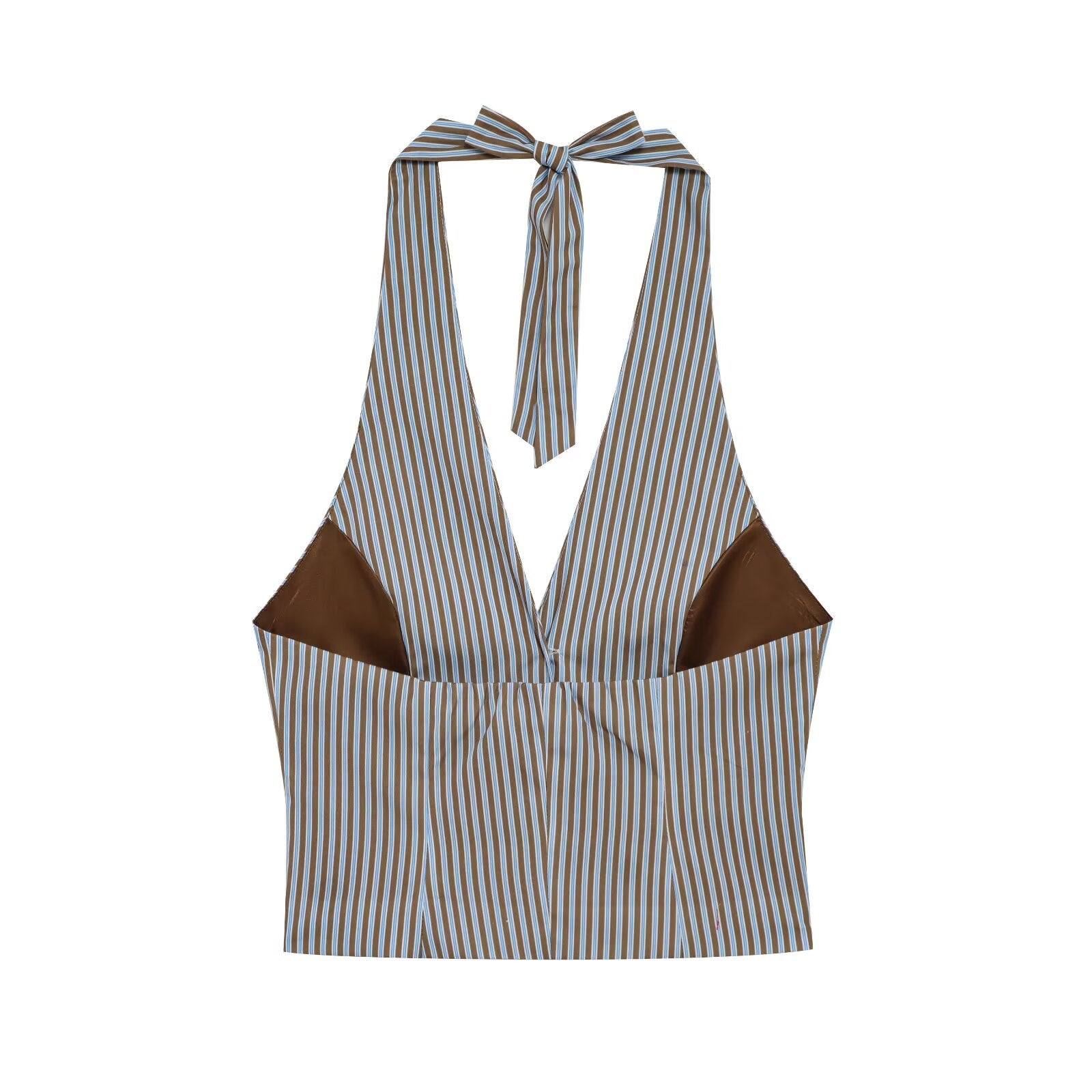 Women's new fashion striped halter neck vest style top retro sleeveless women's vest chic top+Pants Women's suit