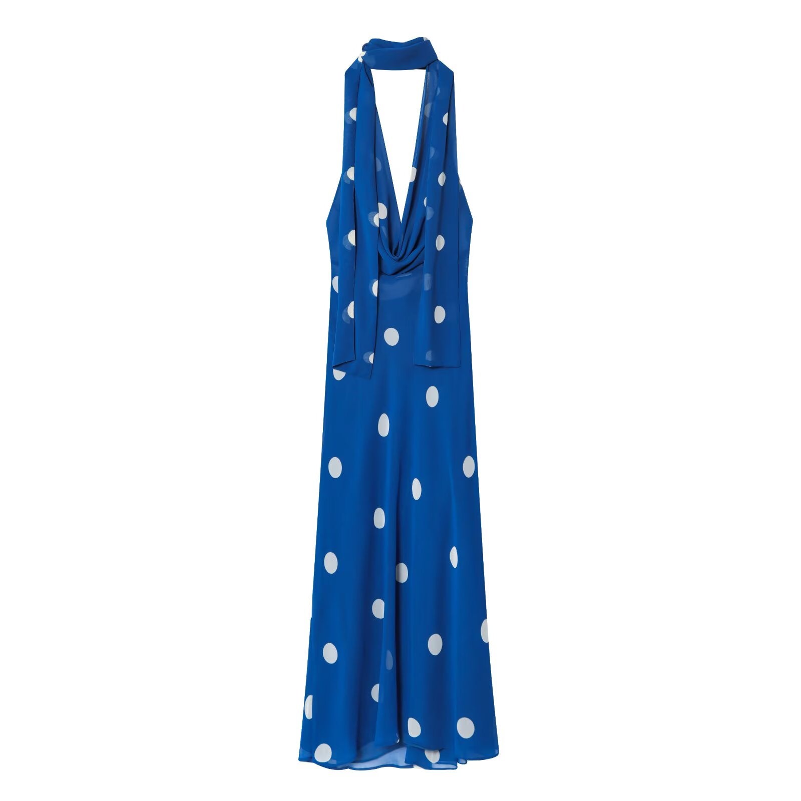 Women's new fashion with scarf polka dot print hanging neck MIDI dress