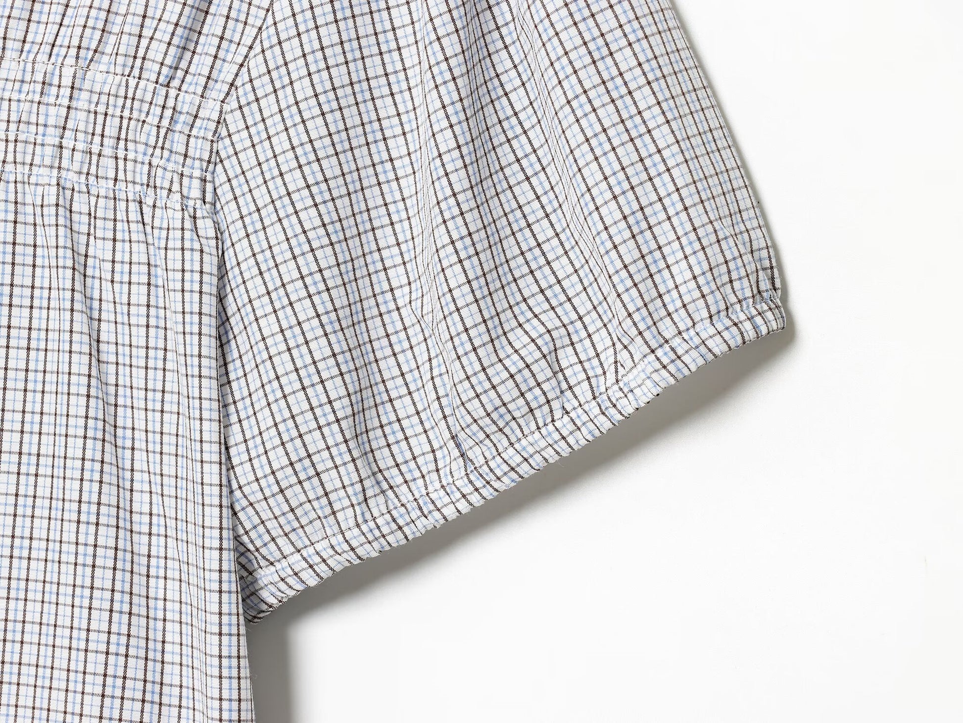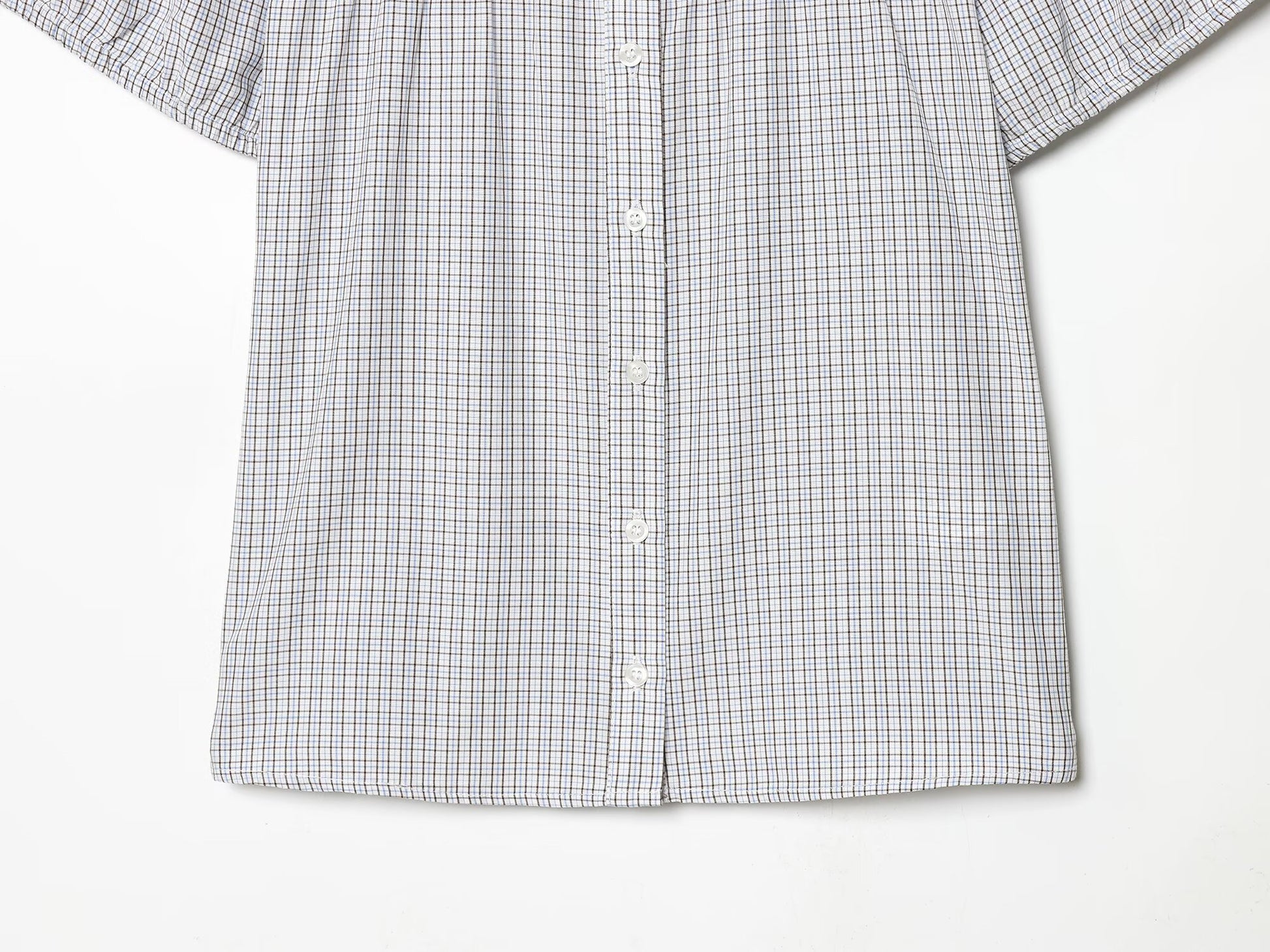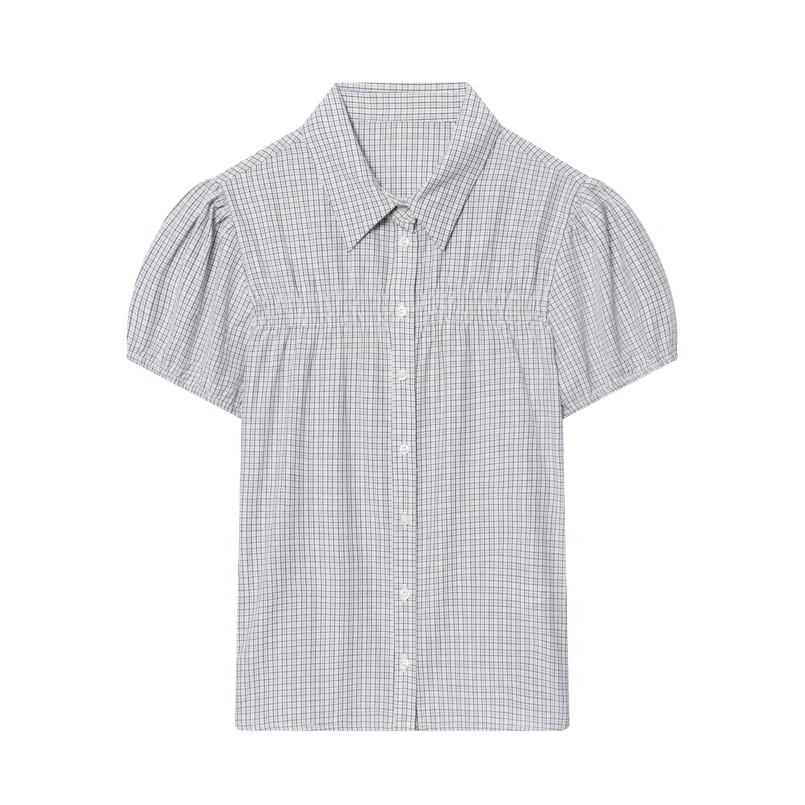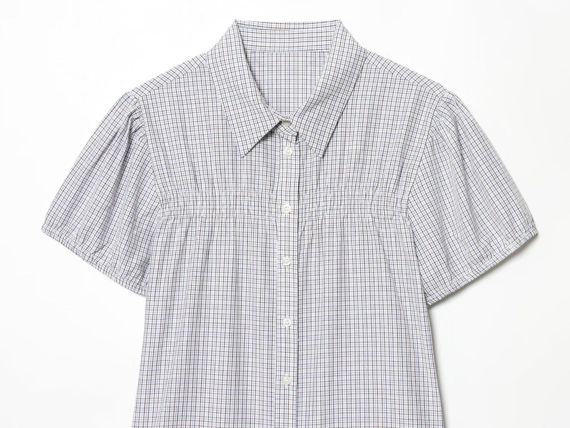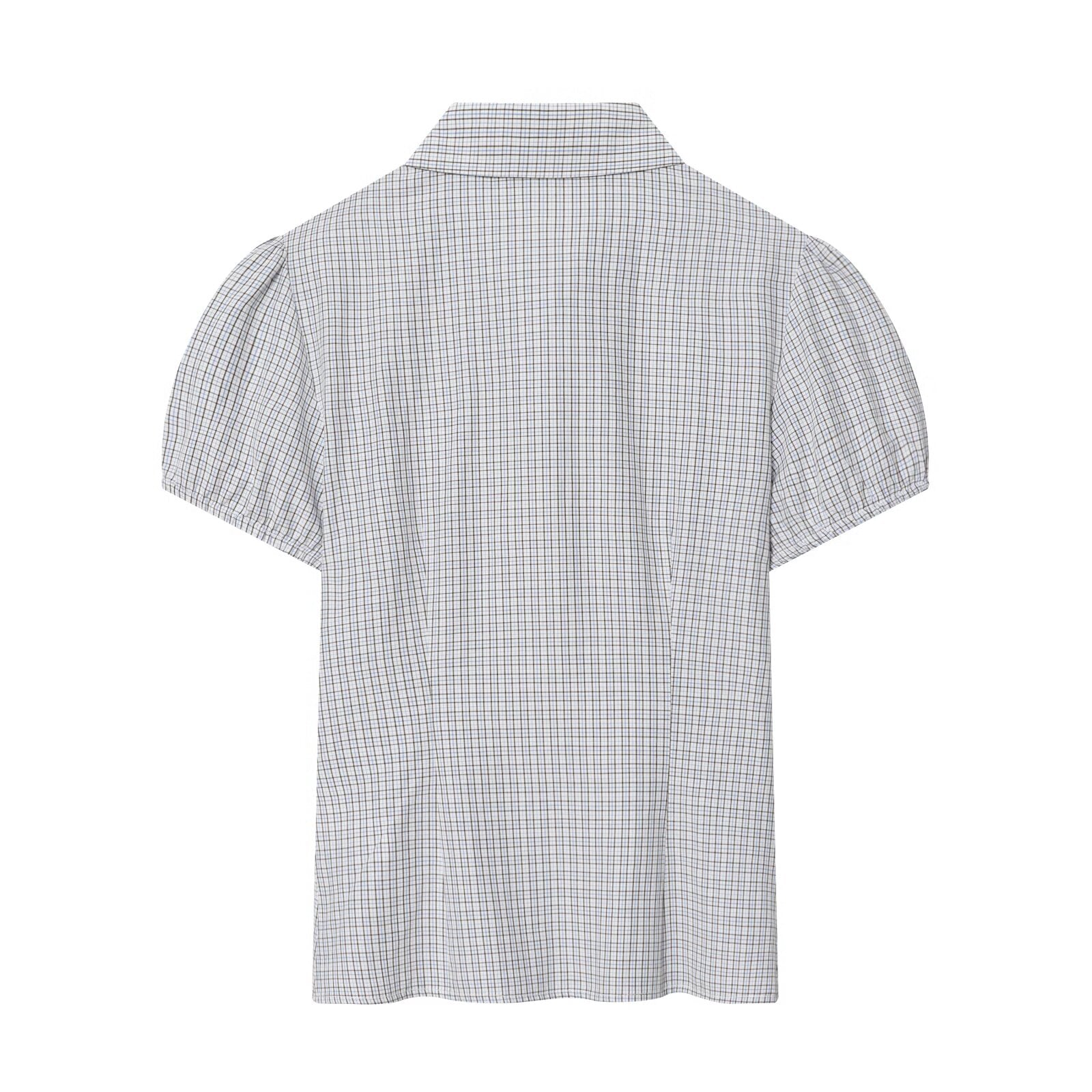Women's short sleeved plaid elastic poplin shirt