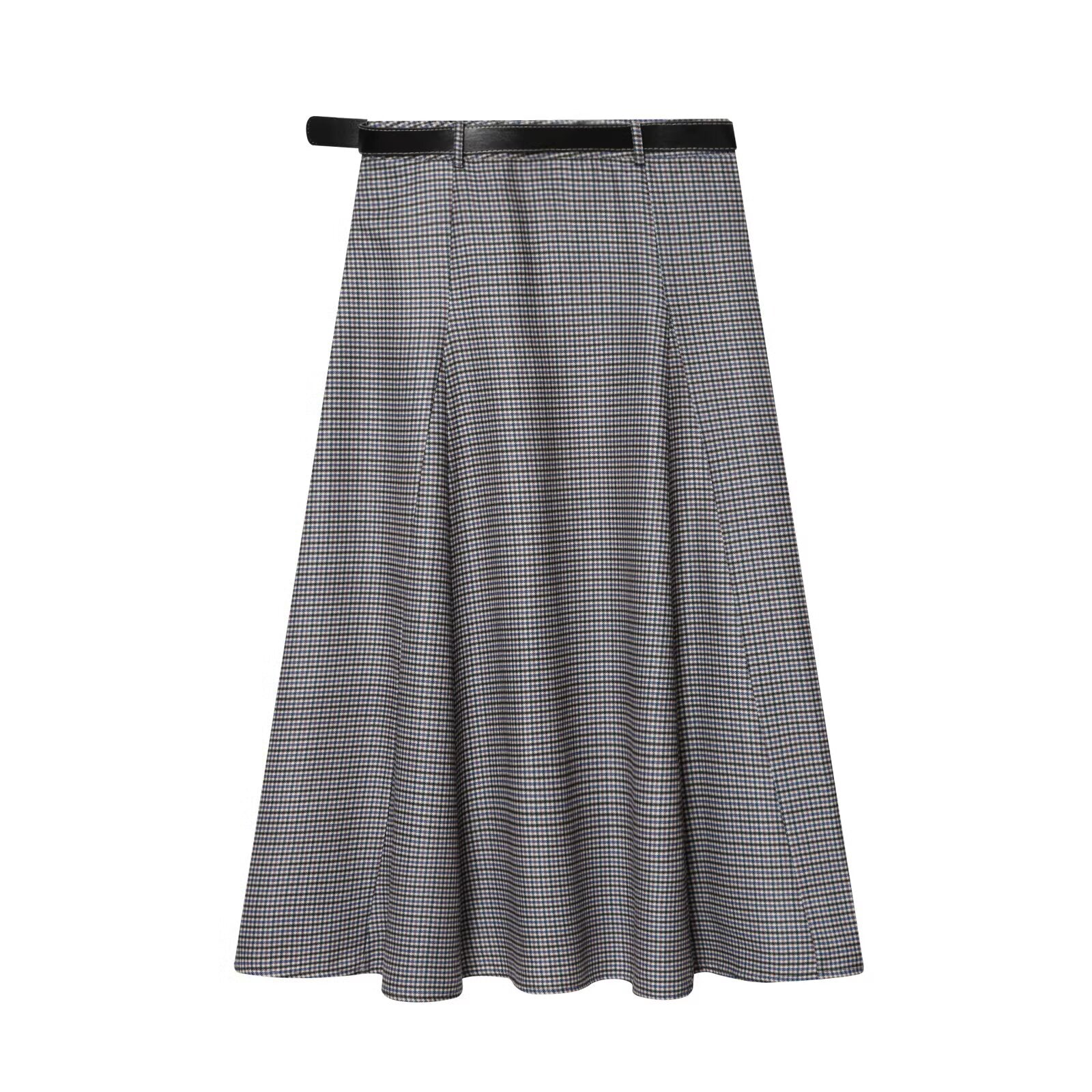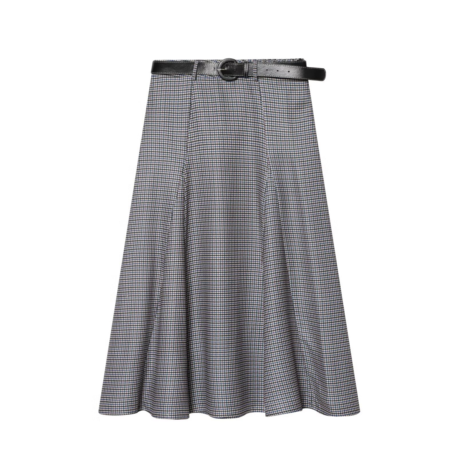 Women's With Belt Casual Plaid Midi Skirt