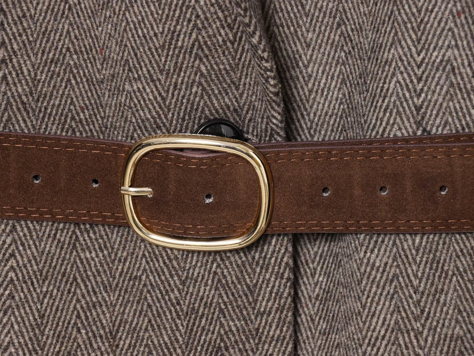 Women's with Belt herringbone diagonal Blazer Coat
