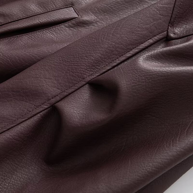 Women's with Belt loose zipper imitation leather jacket Coat