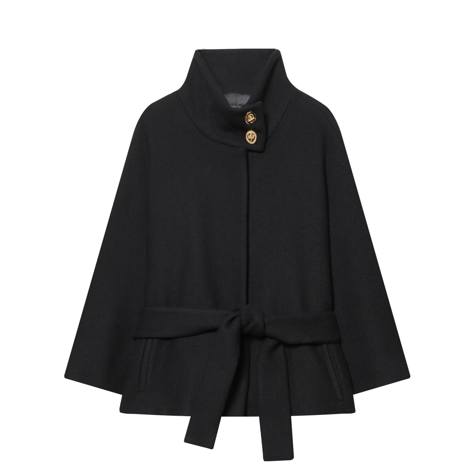 Women's With Belt stand collar Wool Blended Coat